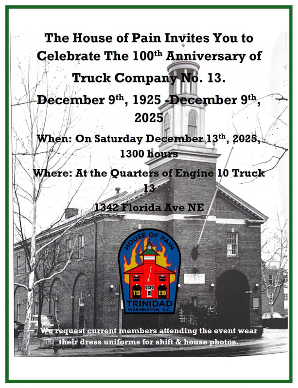 Truck 13 will be celebrating their 100 year anniversary on Dec. 13, 2025 at 13:00 Hrs. at their quarters 1342 Florida Ave. NE See Flyer below for more info: Aug. 8, 2025